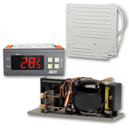 This Dometic Cold Machine DIY Kit is made up of the CU-84 cooling unit, VD-05 evaporator cooling plate, and digital thermostat.