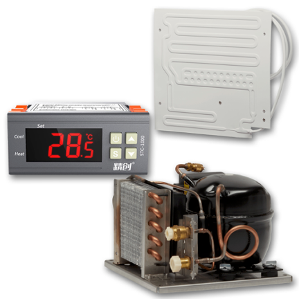 This Dometic Cold Machine DIY Kit is made up of the CU-85 cooling unit, VD-05 plate evaporator, and digital thermostat.