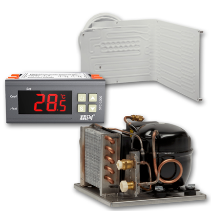 This Dometic Cold Machine DIY Kit is made up of the CU-85 cooling unit, VD-08 angle evaporator, and digital thermostat.