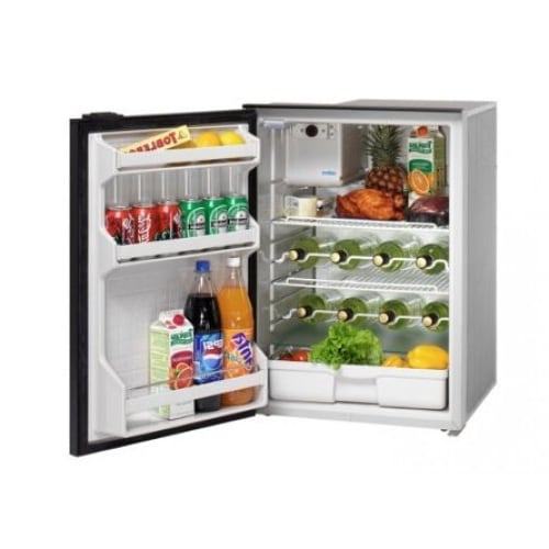 The Isotherm CR130 is a traditional fridge three shelves and a vegetable bin. The door has three shelves and it is equipped with an inner light and a fan cooled compressor.