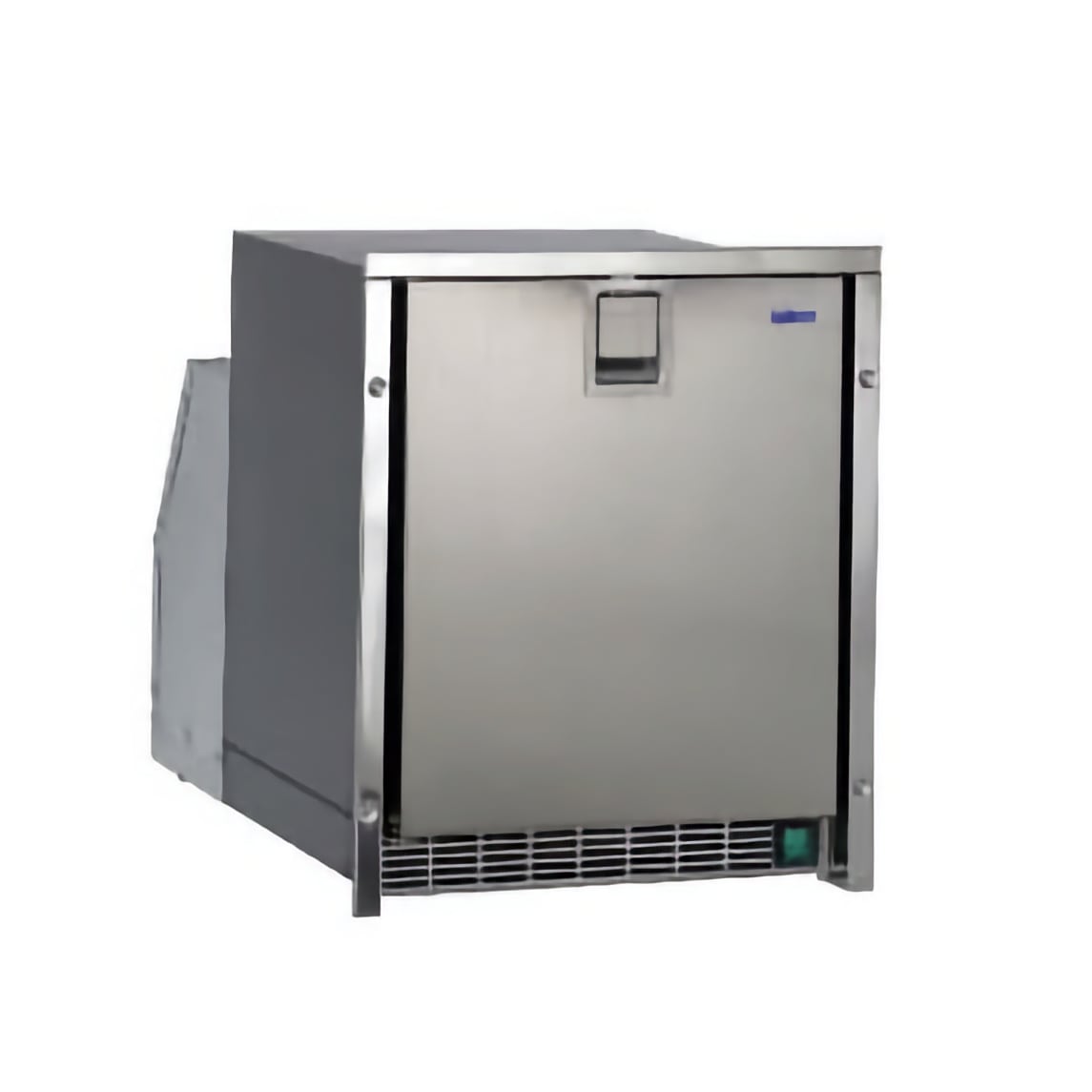 Designed to fit perfectly into limited spaces thanks to its compact design and condensing unit positioned on the back. With a production capacity of 8 kg of ice per day, this unit offers reliable "White Ice" technology that keeps cubes fresh thanks to the refrigerated cabinet. The nautical grade stainless steel design and the flush flange allow perfect integration even in environments with low height, such as spaces under the seats. The high efficiency condenser and air flow conveyor allow ST class certification with guaranteed operation up to +38°C.