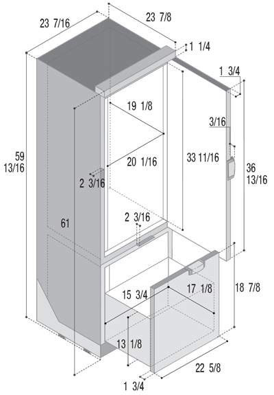 The SLIM250 CHR is a top-tier fridge-freezer from the CHR series, perfect for overland adventures. Weighing 130.1 lbs., it offers 8.8 CU Ft. of storage, split between a front-opening upper compartment and a drawer-opening lower compartment.